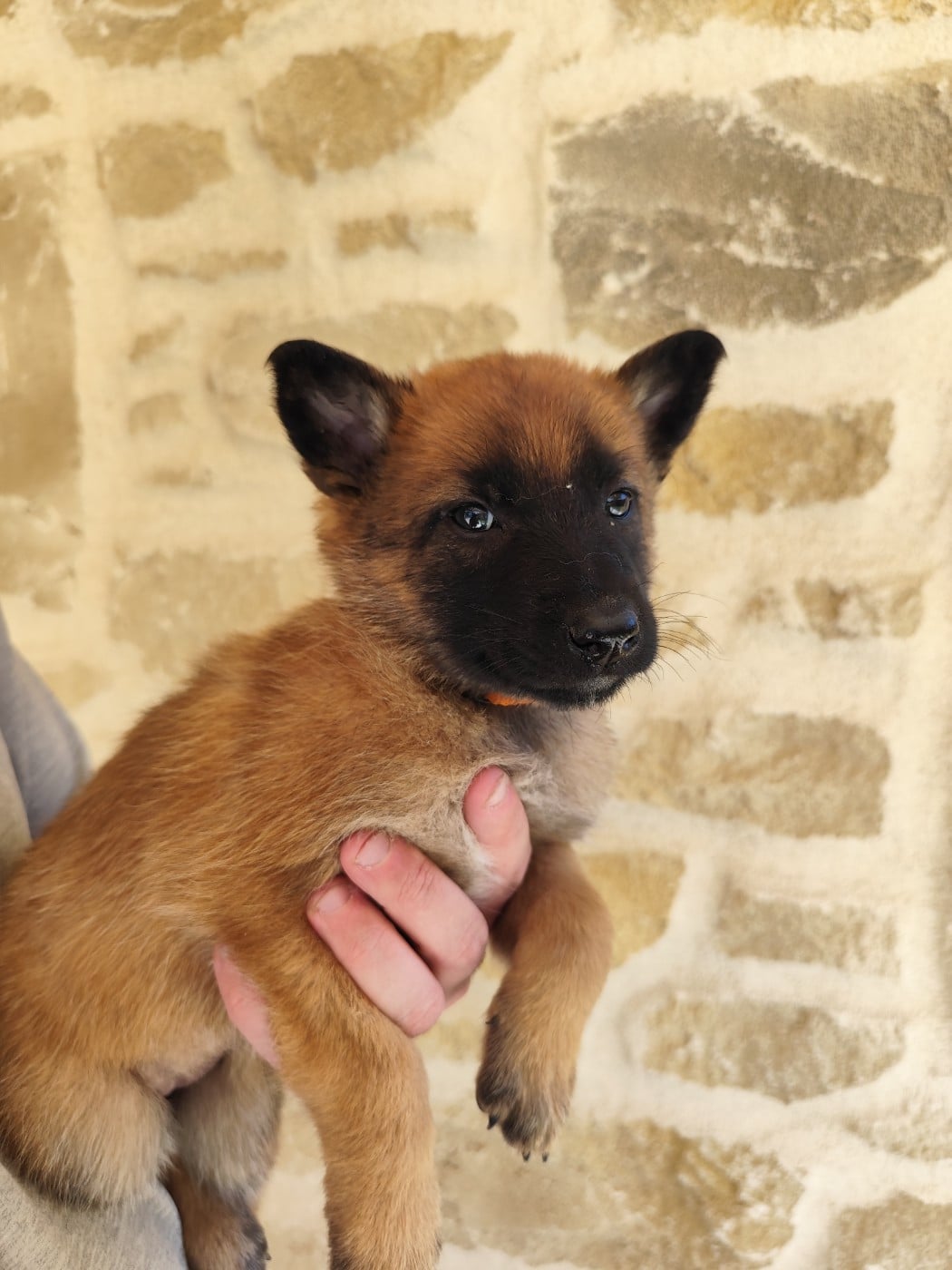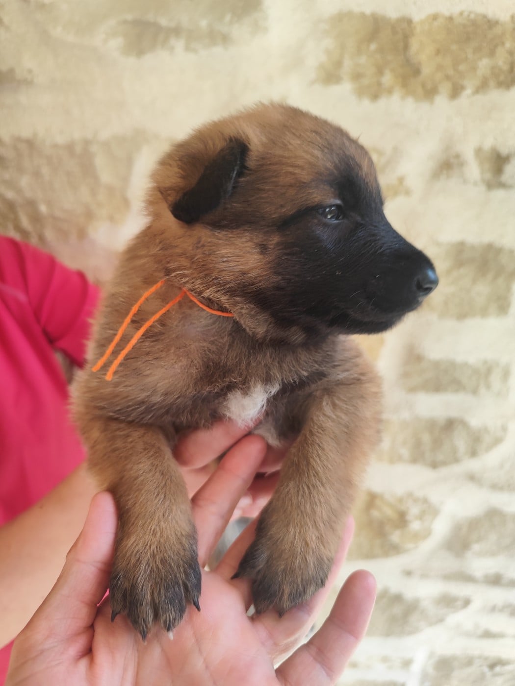Chiots Berger Belge Femelle collier Orange des crocs du vivarais