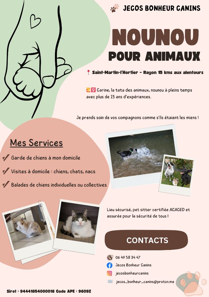 Carine, la Tâta des Animaux, à votre service ! Secteur Saint Martin l'Hortier.
