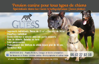 Pension dans un cadre familial, pas de boxLimité en nombre de chiens Demande à ce que les futurs...